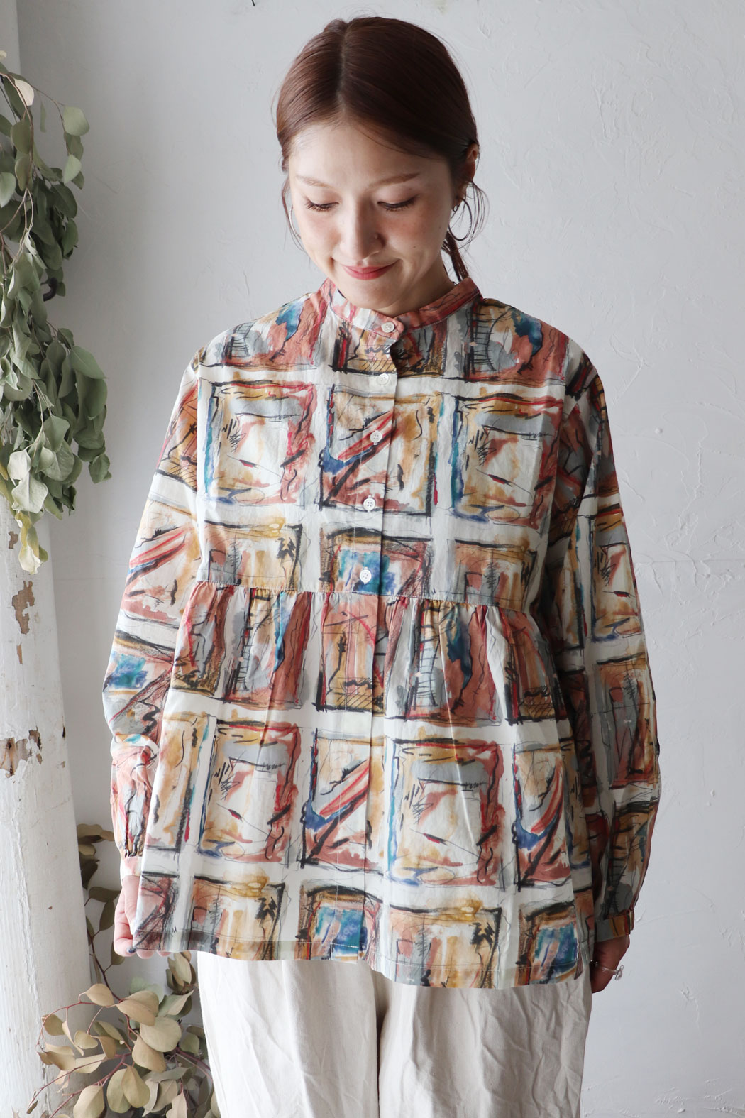 まるで絵画のような独創的なデザインが目を惹くシャツ。 ウエストから広がるギャザーがふんわりとしたフレアシルエットに* 前後着用可能な2way仕様なので、気分によって雰囲気を変えられます。 秋冬アイテムとも相性の良い配色で、中にタートルなどのインナーを合わ...