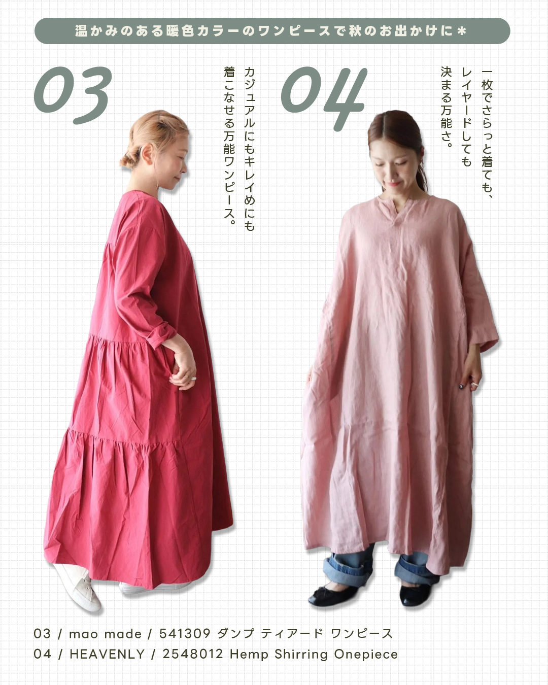 秋の空気に映える、静かな存在感を放つワンピースです。
