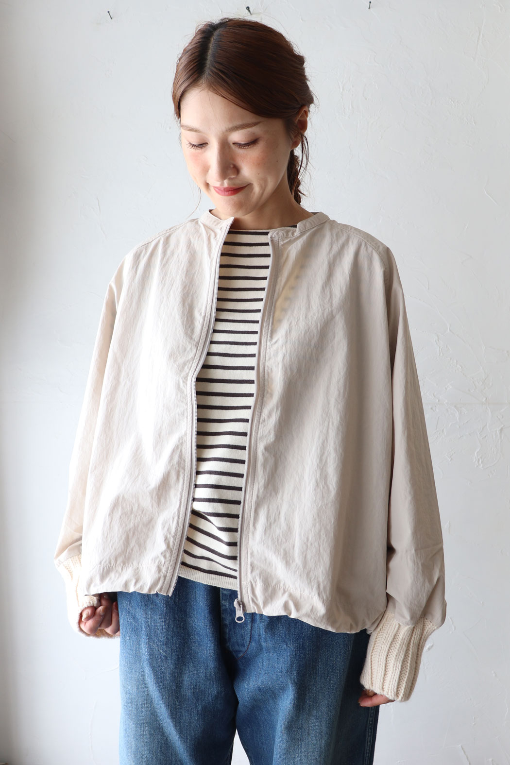 高密度のウェザーナイロンにローゲージ編みのニットを袖口に付けたマウンテンパーカー。 裾に向かって広がるテントラインとオーバーサイズが今っぽく、こなれたシルエットを生みます。 裾にはドロスト紐をあしらい、丸みのあるフォルムを楽しんでも〇 前を開けても、...