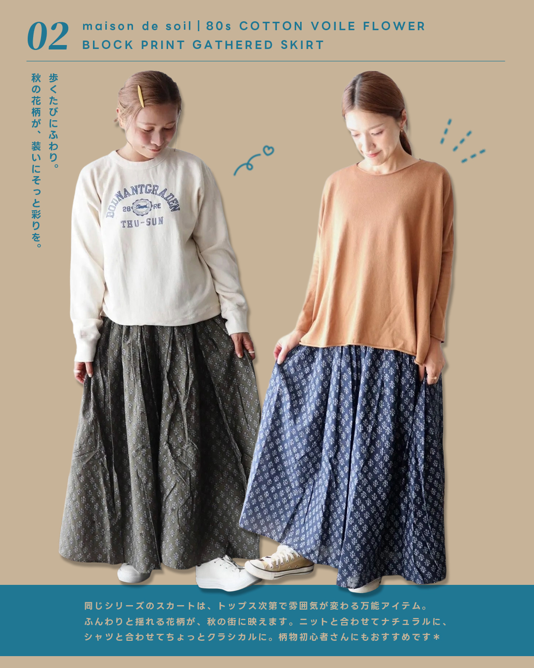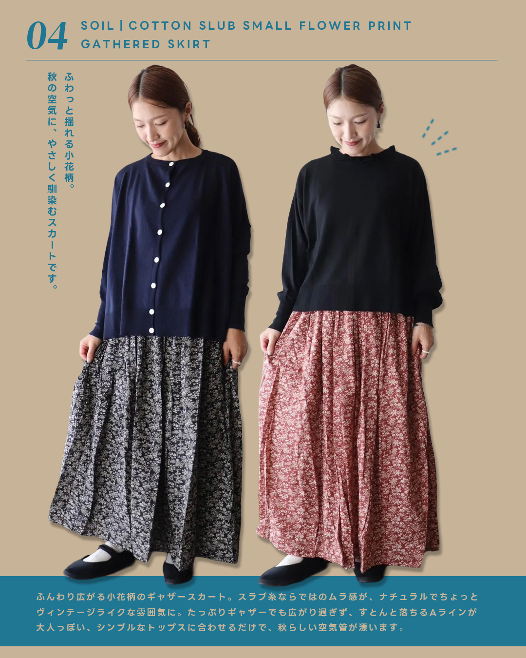 ふわり広がる小花柄がSOILらしいギャザースカート。