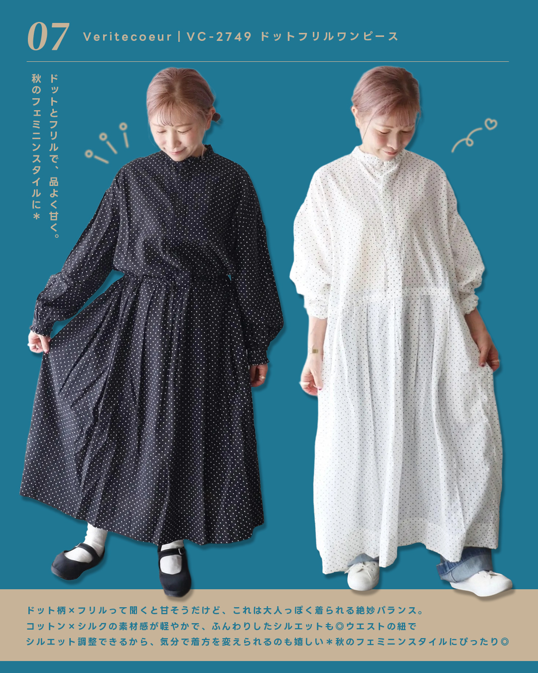 繊細なドット柄とフリルのディティールが、