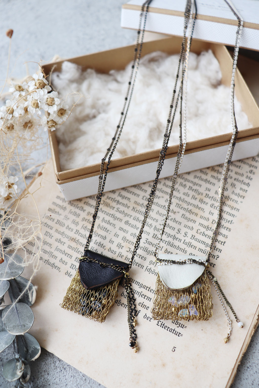 柔らかな金属のメッシュ素材をポーチに見立て、その中に天然石を忍ばせたネックレス。 フタはレザーを使用し、異素材が織り成す絶妙なバランスが魅力の1点* どこから見てもデザイン性が高く、カジュアルコーデにもオケージョンシーンにも合わせていただけます。 存...