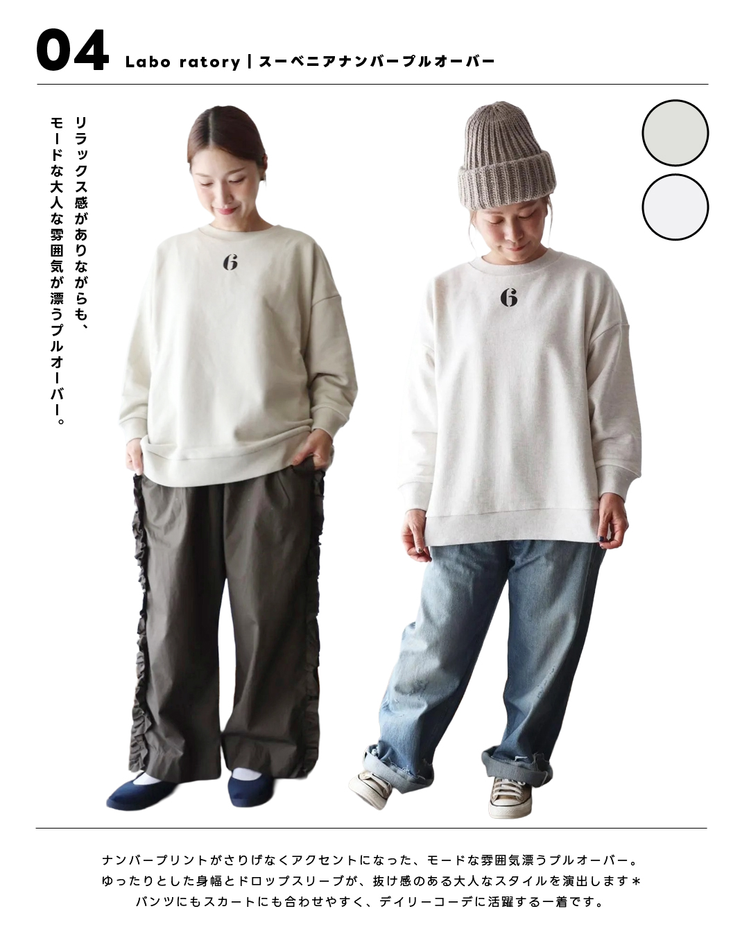 リラックスしながらもモードな雰囲気漂うプルオーバー。 アンティークテンシルのナンバーが、さりげないアクセントに* ゆったりとした身幅とドルマンスリーブがこなれたシルエットを生みます。 パンツともスカートとも相性良く、デイリーコーデに活躍する1着〇