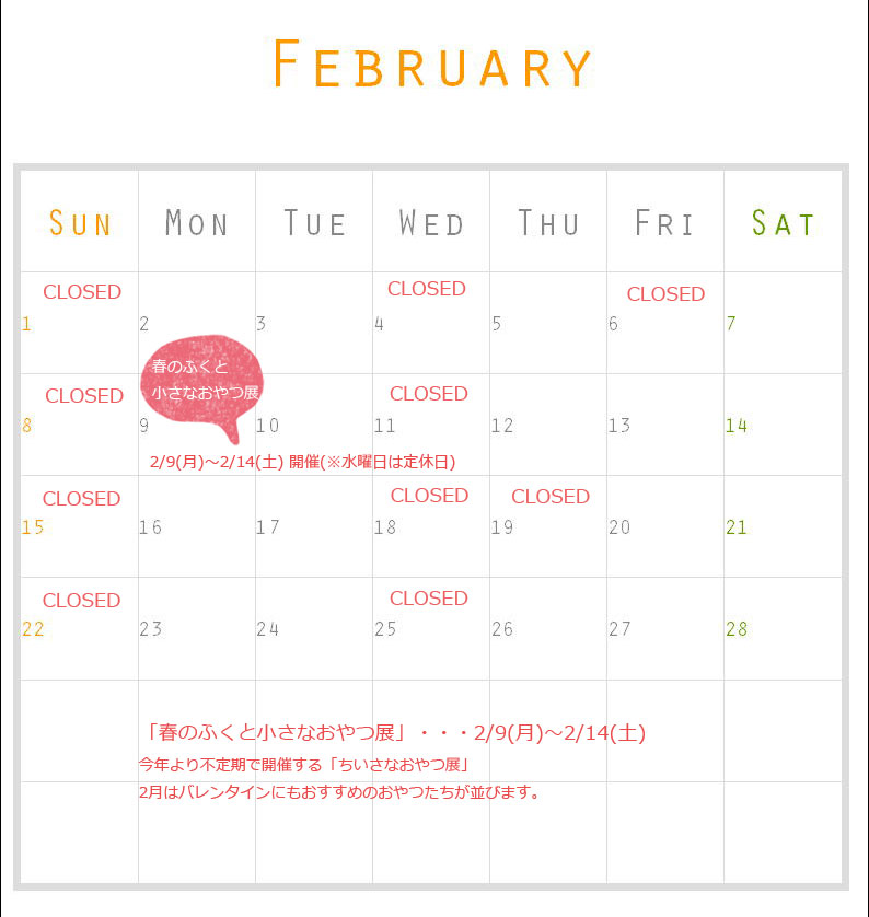 ※店頭の2月の臨時休業は下記日程です。