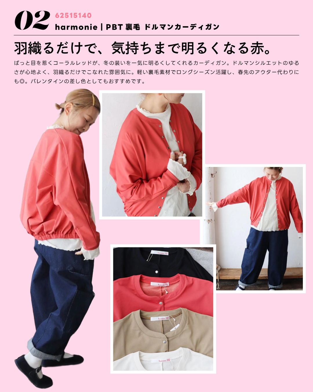02. harmonie|PBT裏毛 ドルマンカーディガン