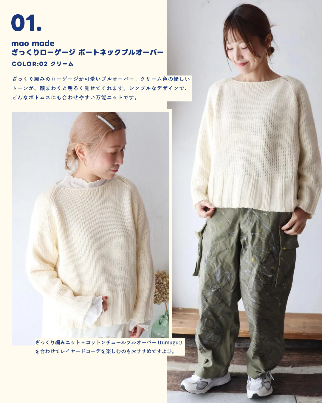 01. mao made|ざっくりローゲージ ボートネックプルオーバー