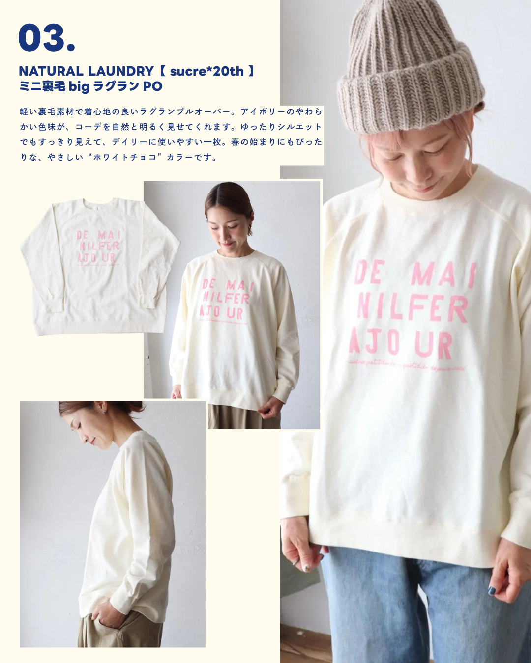 03. NATURAL LAUNDRY|sucre 20th* ミニ裏毛 bigラグランPO