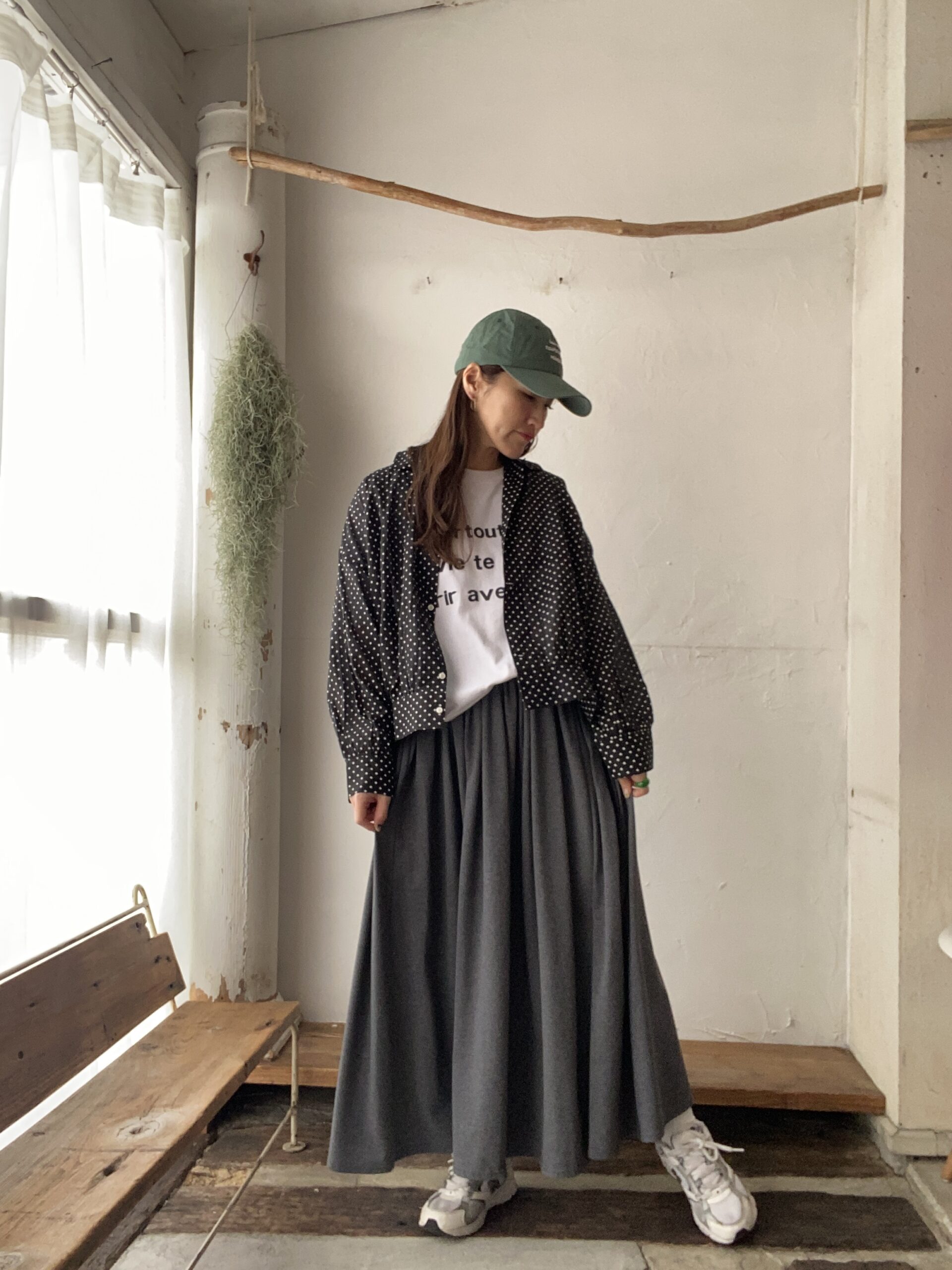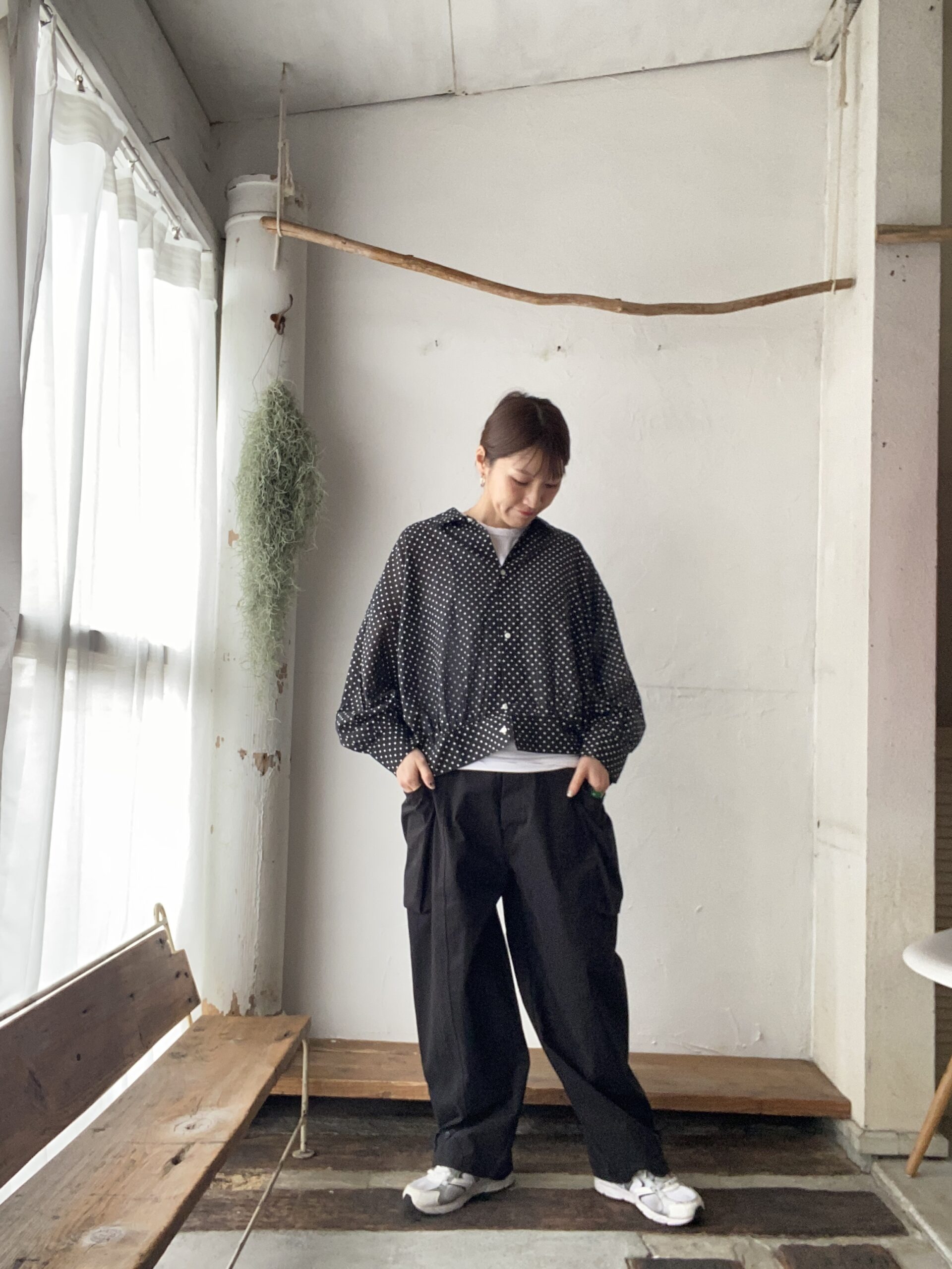 さて、今日はveritecoeurの新作の中からドットブラウスとカーゴパンツのご紹介です。