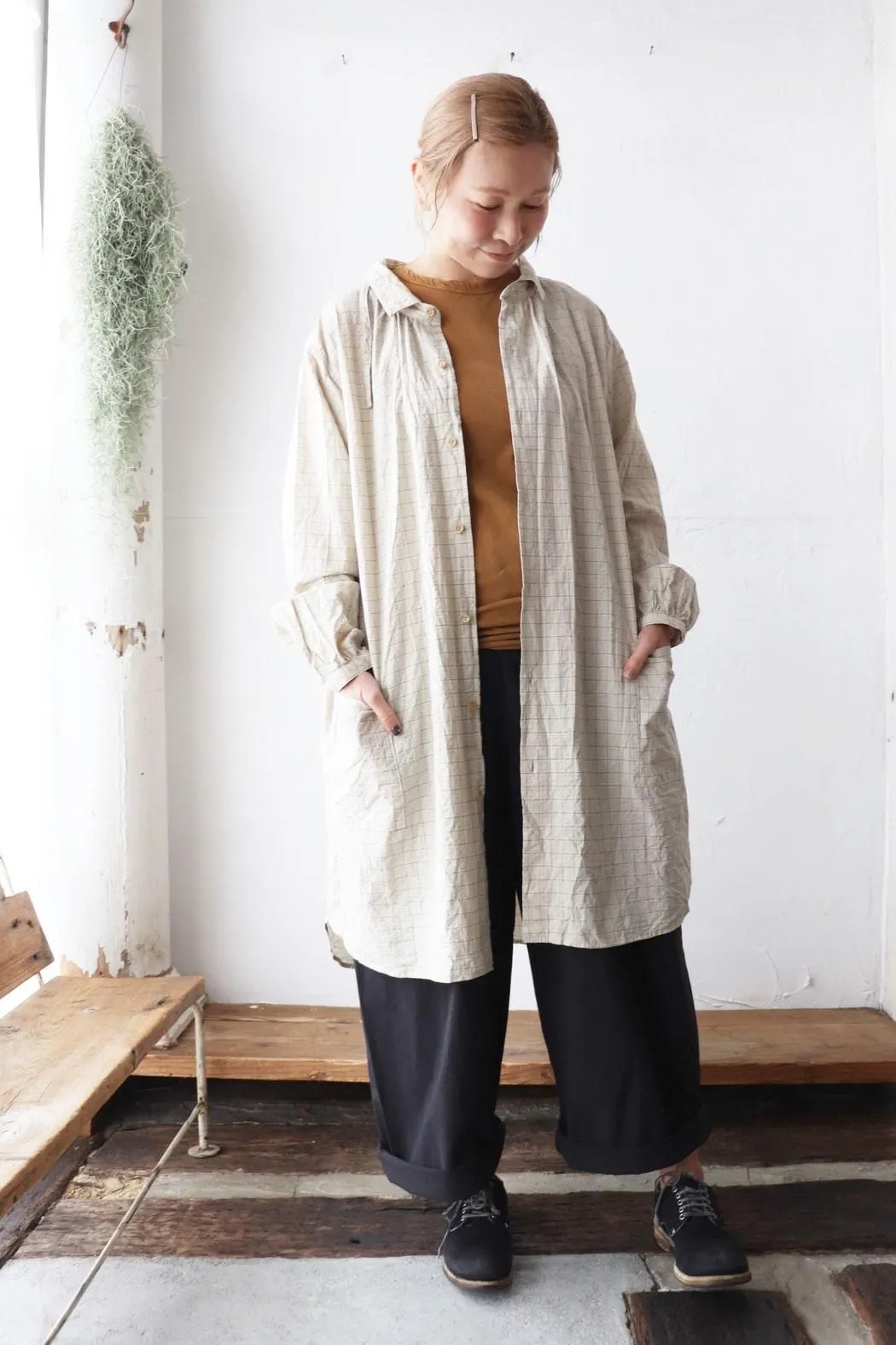 【Vlas Blomme|ヴラスブラム】Glen Check Seersucker 2way チュニックシャツ|2wa...