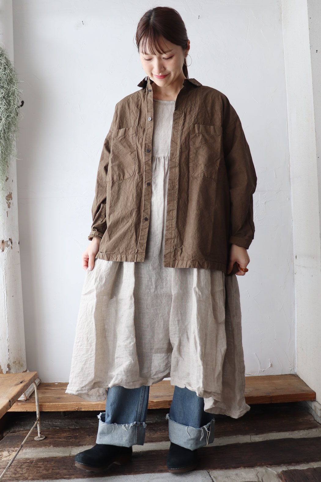 太番手のコーマ糸を高密度で織り上げた、ハリのあるコットンブロード素材のシャツ。 硫化染めを用いることで、アタリや擦れ感のあるヴィンテージライクな風合いに仕上げています。 ベーシックなレギュラーカラーで使いやすいデザインに* ゆとりのあるボックスシルエ...