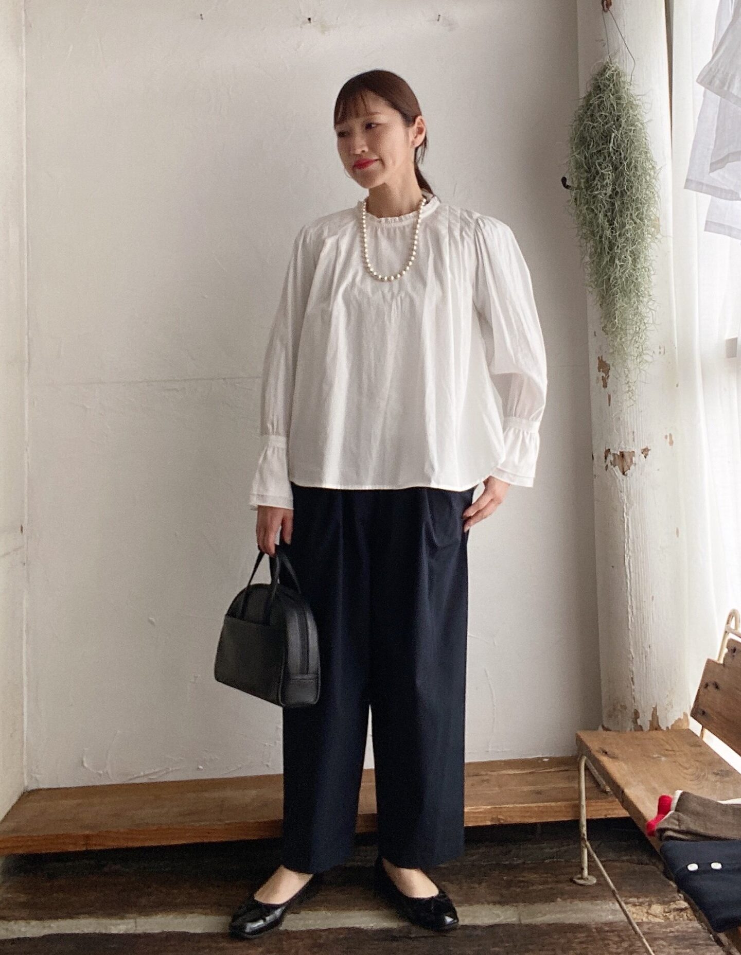 ホワイト×ネイビーのコーデ。