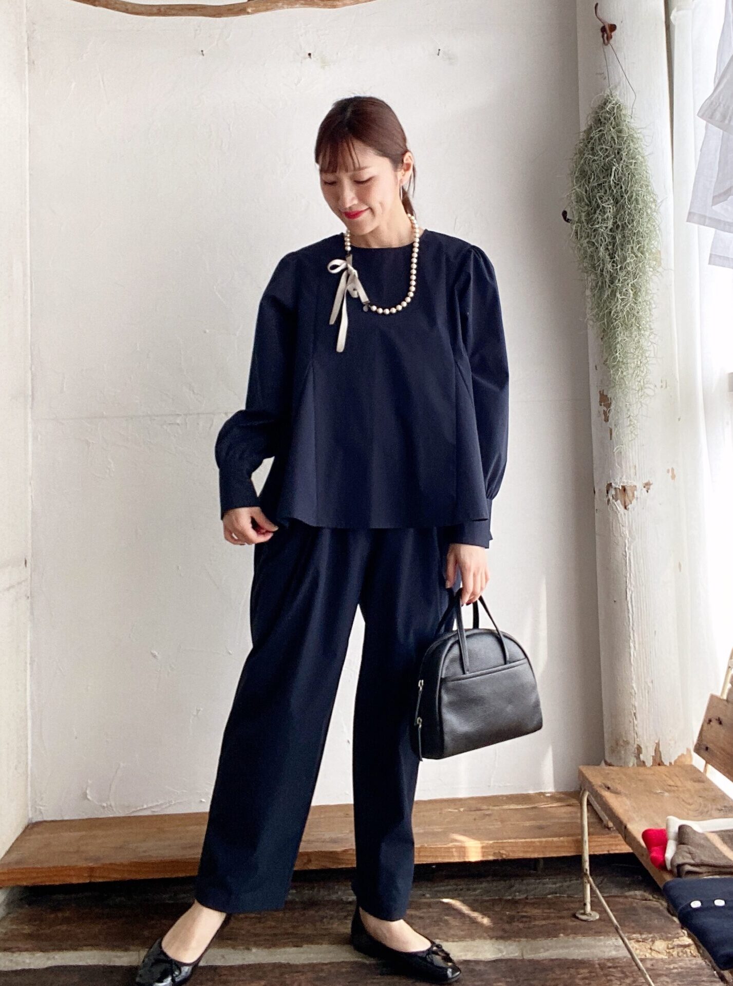 ブラックネイビーのカラーが上品です。