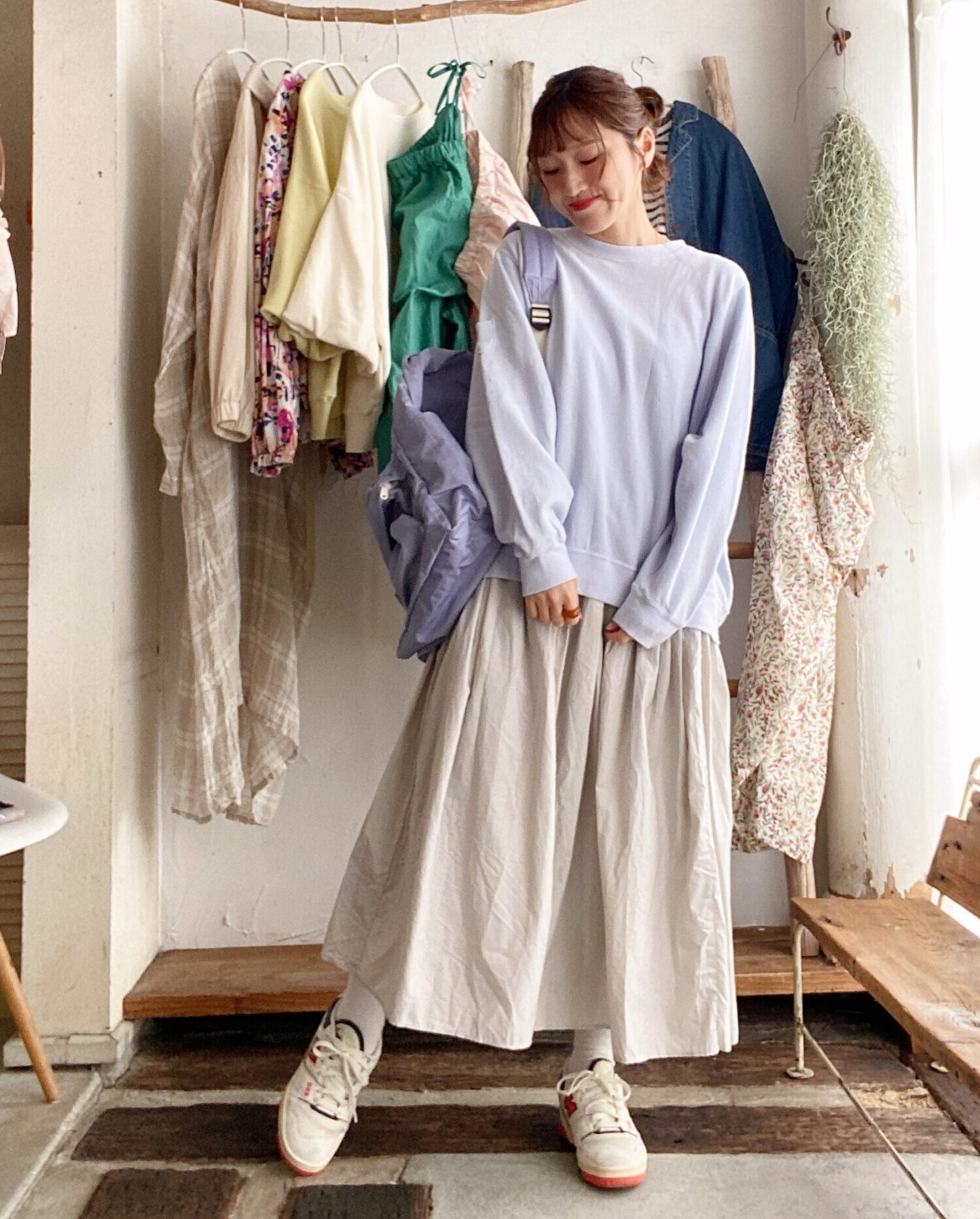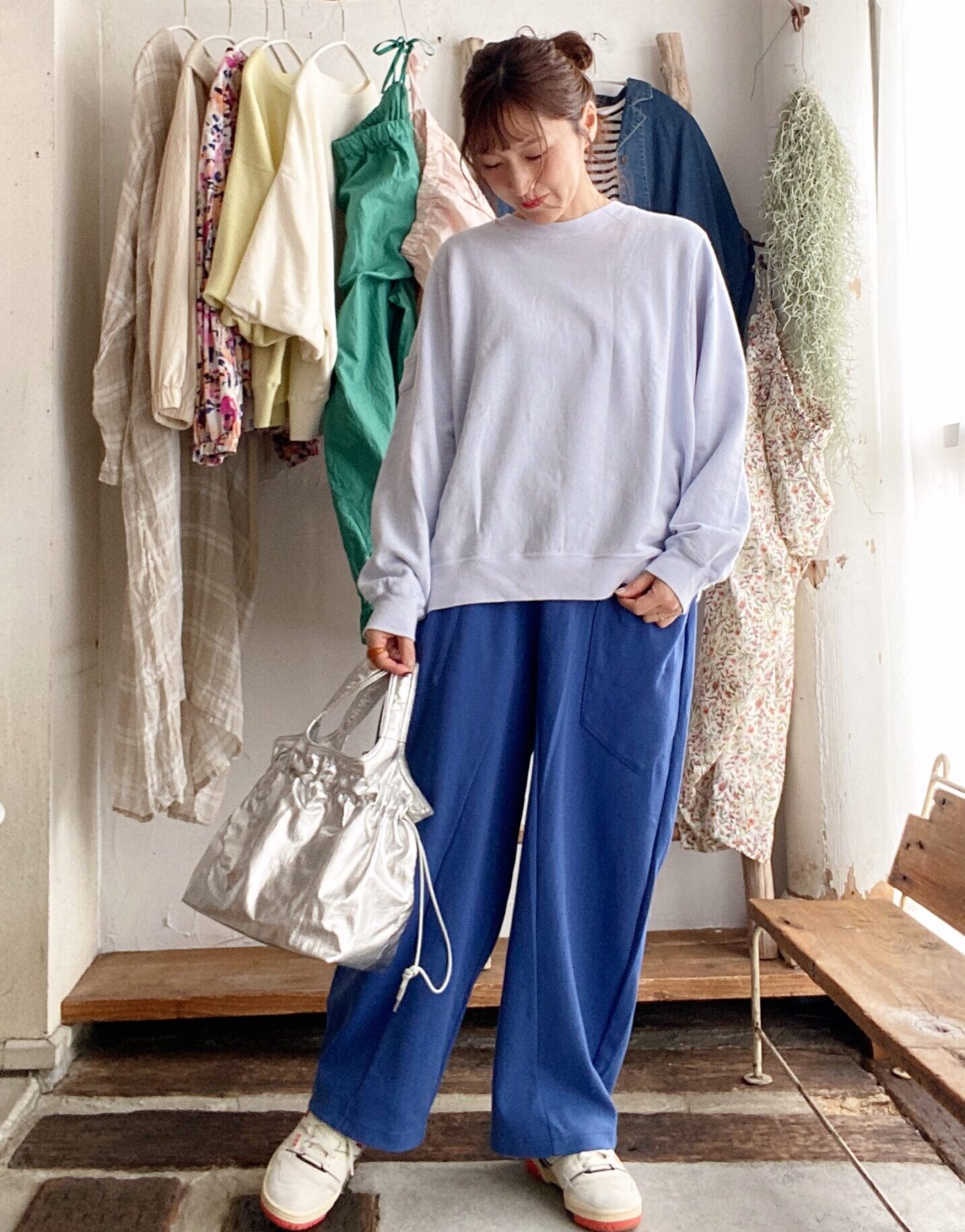 上下ともに楽なスタイルだけど、しっかりおしゃれにまとめやすい。