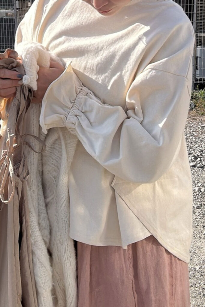 ゴムが入っているので、袖をクシュっとまくることもできます。